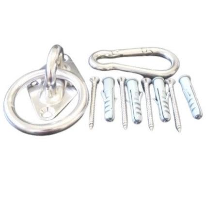 Vårt vägg-/takfäste håller exceptionell kvalitet och klarar belastningar upp till 200 kg. Oavsett om du tränar inomhus eller utomhus är detta rostfria stålfäste robust och pålitligt. Med fyra högkvalitativa skruvar och pluggar inkluderade blir monteringen enkel och säker.